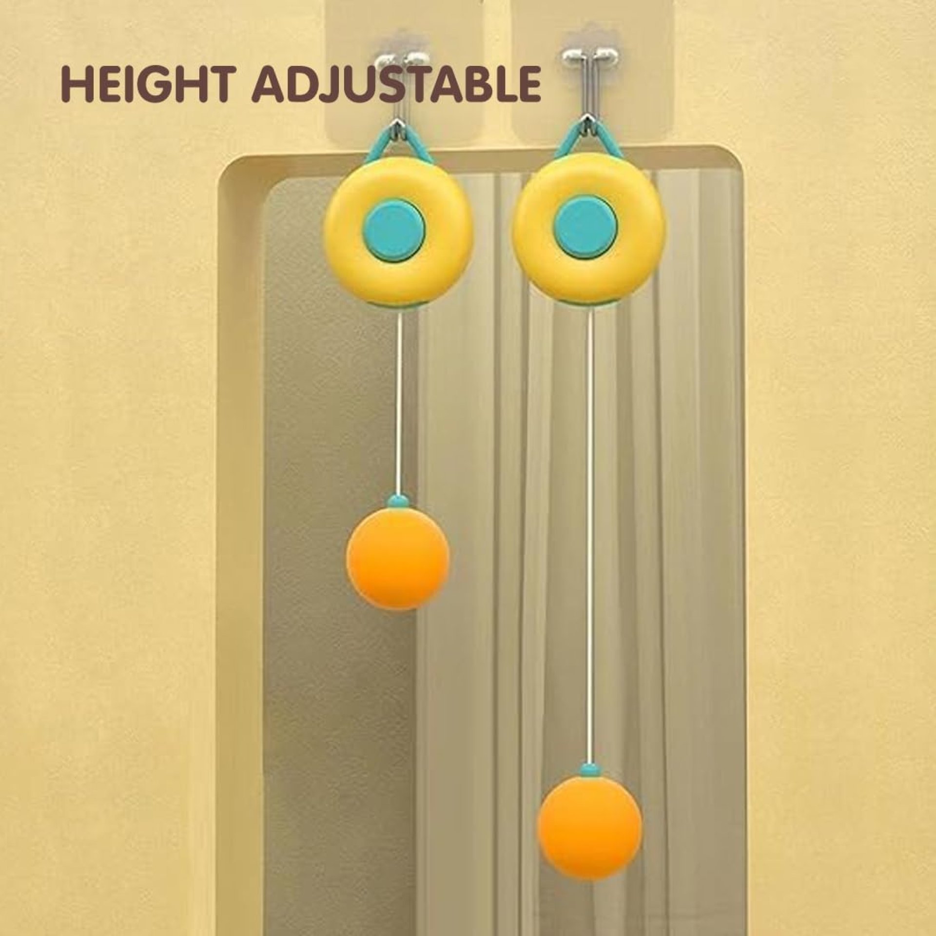 BELOXY Kids Indoor Hanging Table Tennis Trainer Set, 2 Rackets & 3 Balls, Adjustable Height Self Training Game (Pack of 1)